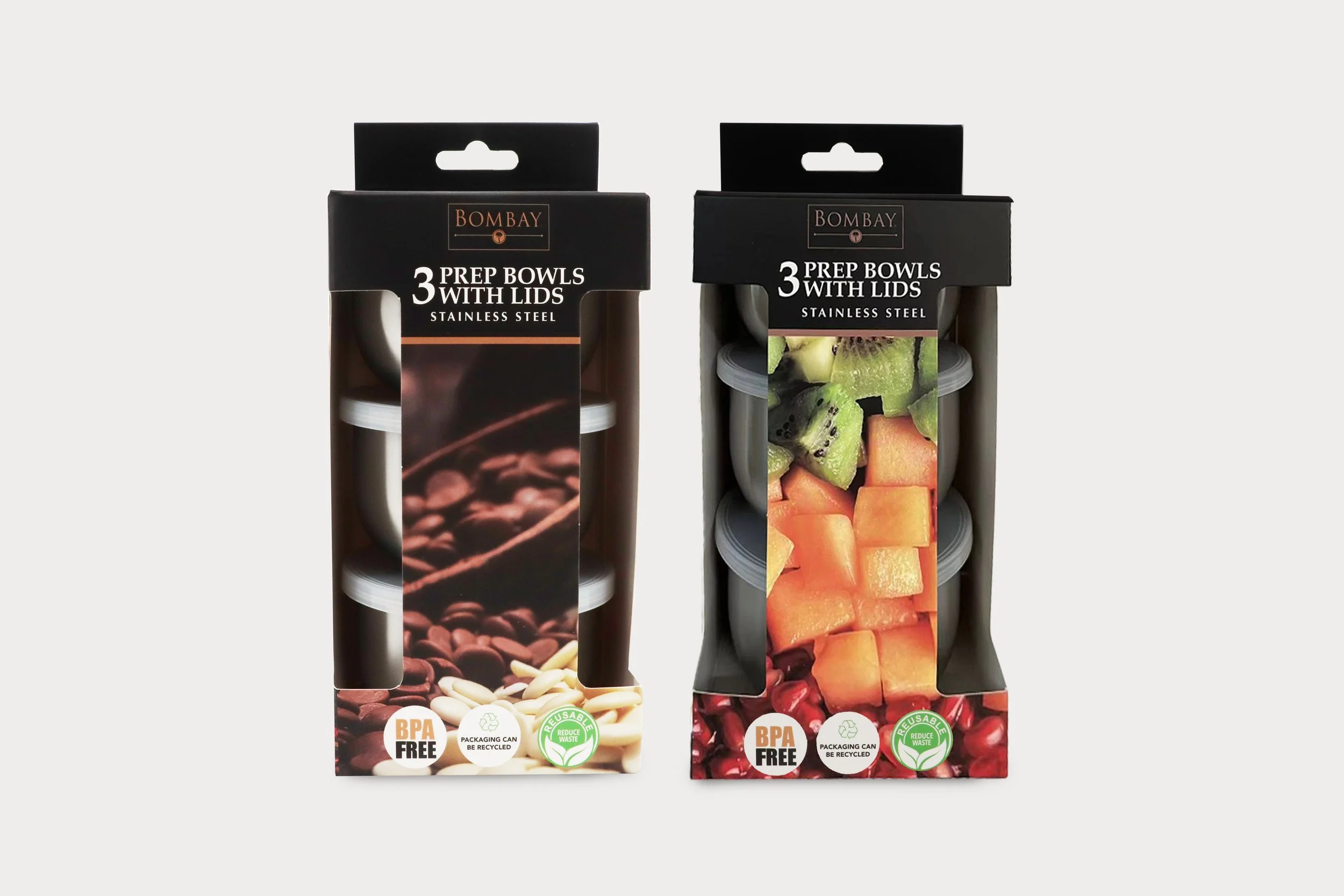 For this project, I was tasked with creating the packaging for a set of 3 and 4 food preparation bowls. We decided to use an open box that would increase product visibility and provide a convenient unboxing experience for customers. I worked on several different cuts for the boxes and came up with a solution for an open box that would show the bowls partially. They key was to create a a sturdy box with windows that were not too big to keep the stability of the box.