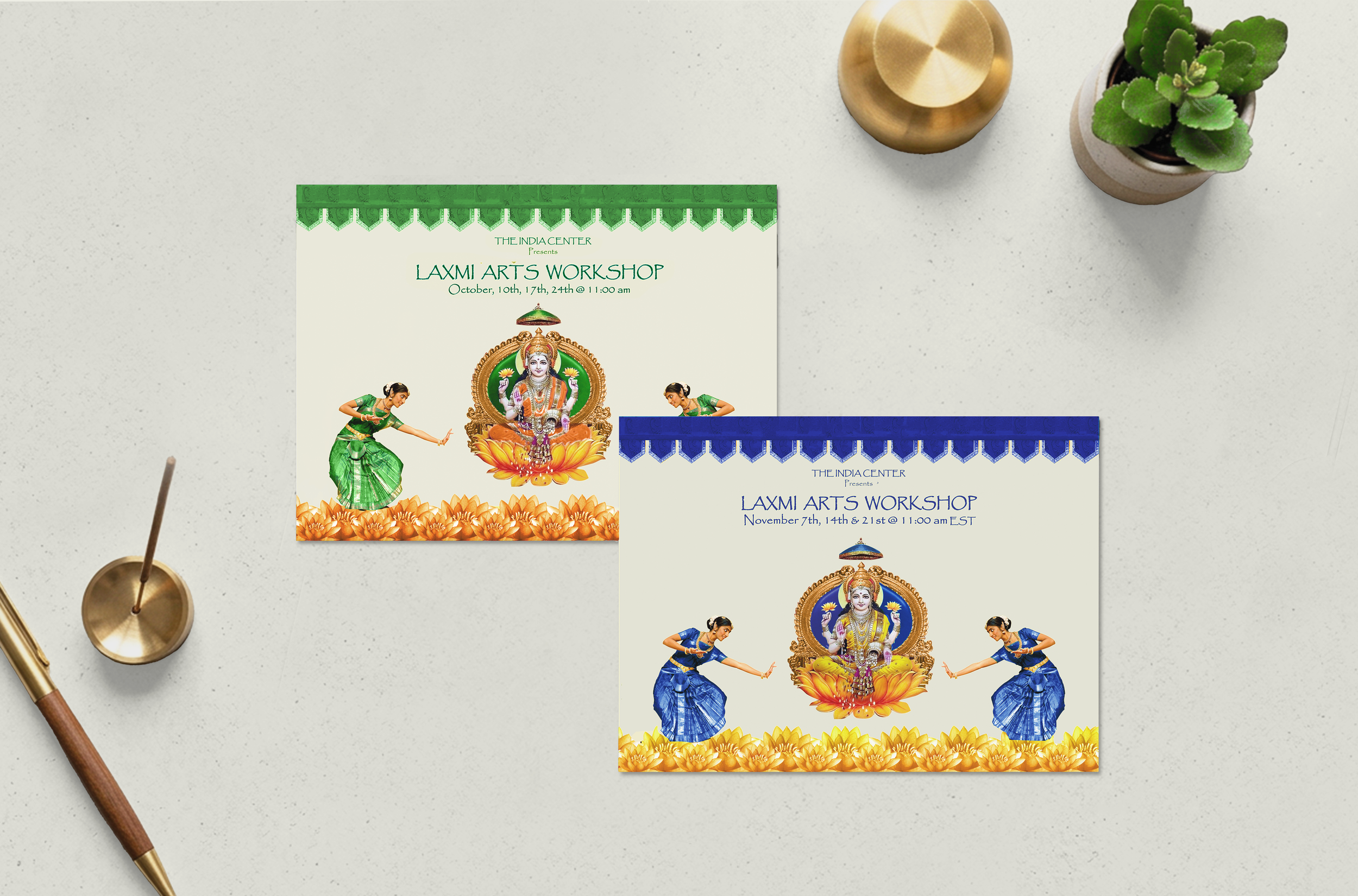 The India Center is a nonprofit that hosts programs designed to promote Indian culture. By bringing assets together and creating a unified brand, I increased visibility, expanded their reach, and widened their target audience for cultural events. Every image is centered on depictions of deities, which have long been a component of Indian culture